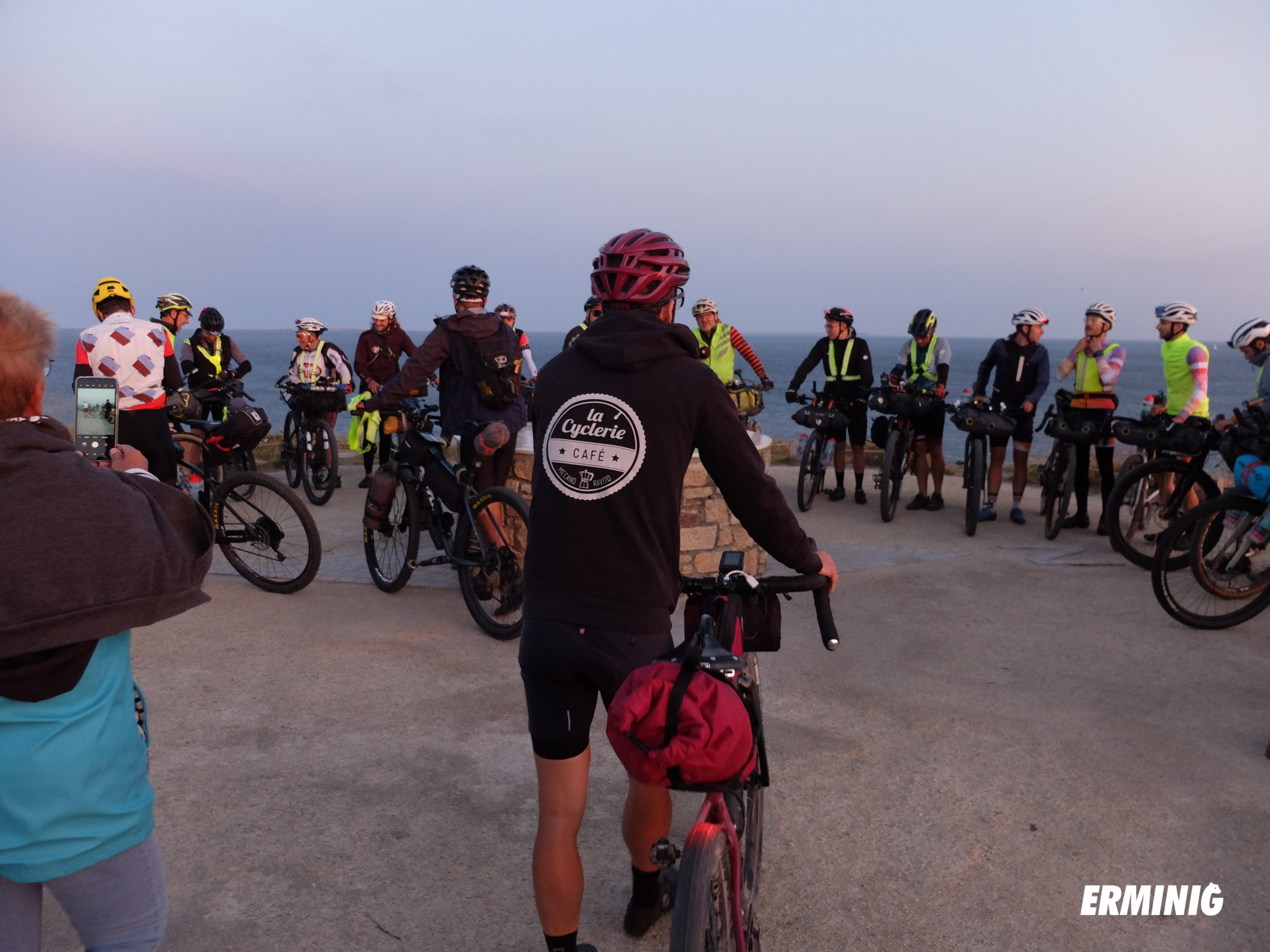 C’est toujours un grand moment que le départ de la Sea To Peak. La pointe de Corsen fait face à la mer d’Iroise et les iles du Ponant. C’est le point le plus à l’ouest de France. Le soleil se levant, il indique la direction aux participants – plein Est vers les premiers « sommets » avec les Monts d’Arrée.