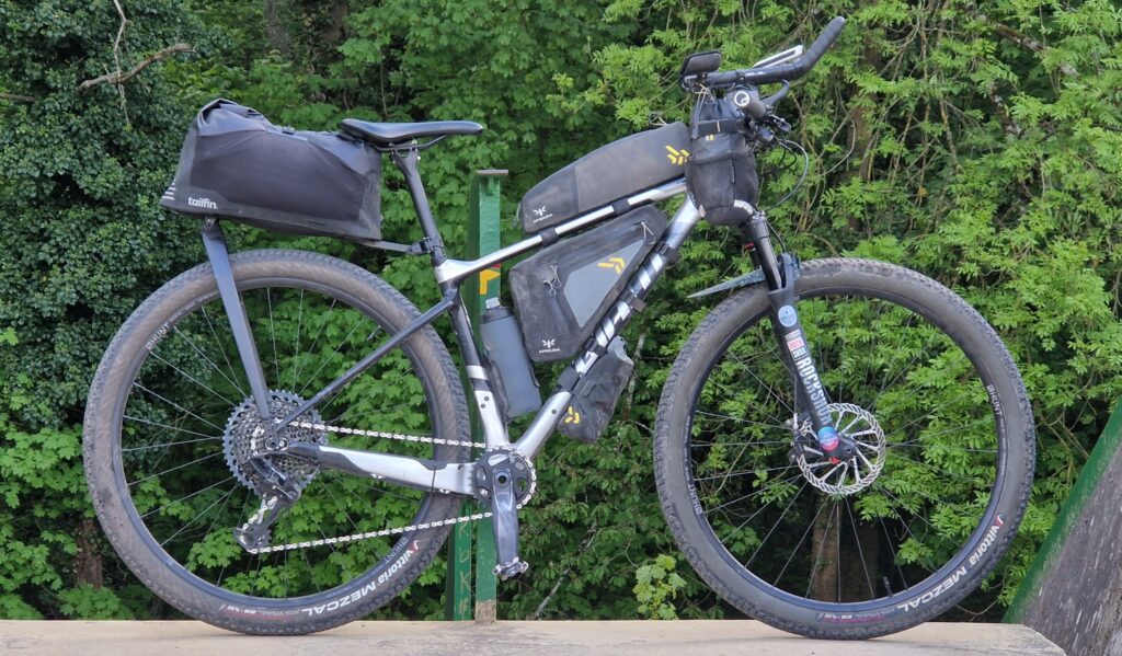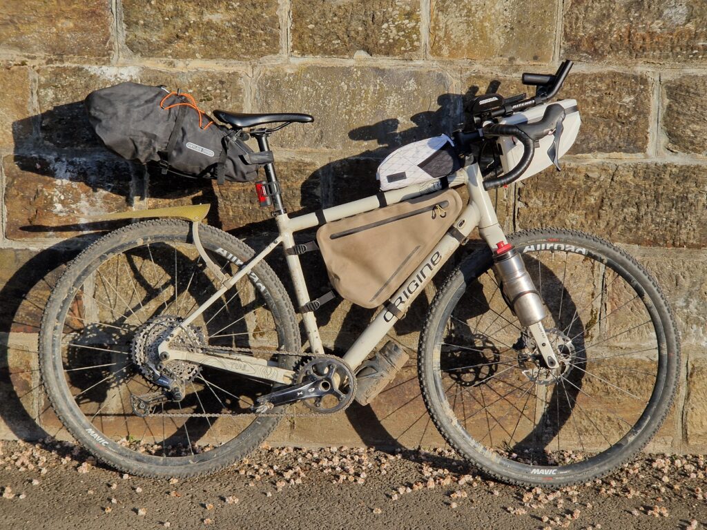 Bagagerie : Baggage is a mix of Restrap frame bag, Tailfin Aeropack, Alpkit and Revelate front bags.